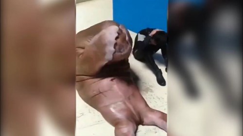 Ngay cả chú hải cẩu mập ú này cũng mơ ước sở hữu cơ bụng 6 múi và có vẻ rất sảng khoái khi được tập gập bụng cùng với huấn luyện viên.