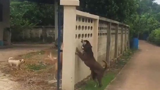 Những “anh hùng rơm” to xác liên tục sủa, dọa dẫm nhau qua bức tường. Và chú chó bé nhỏ nhất lại can đảm nhất lao ra khỏi bức tường để ... giải tán đám đông.